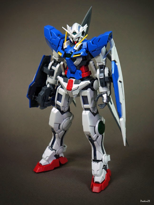Exia is a very nice kit. I wasn't too sold on the "busy" design but with it done up and panel lined properly, I begin to appreciate the lines and the shape. Such a contrast to the plain-Jane AGE-1 Normal.
